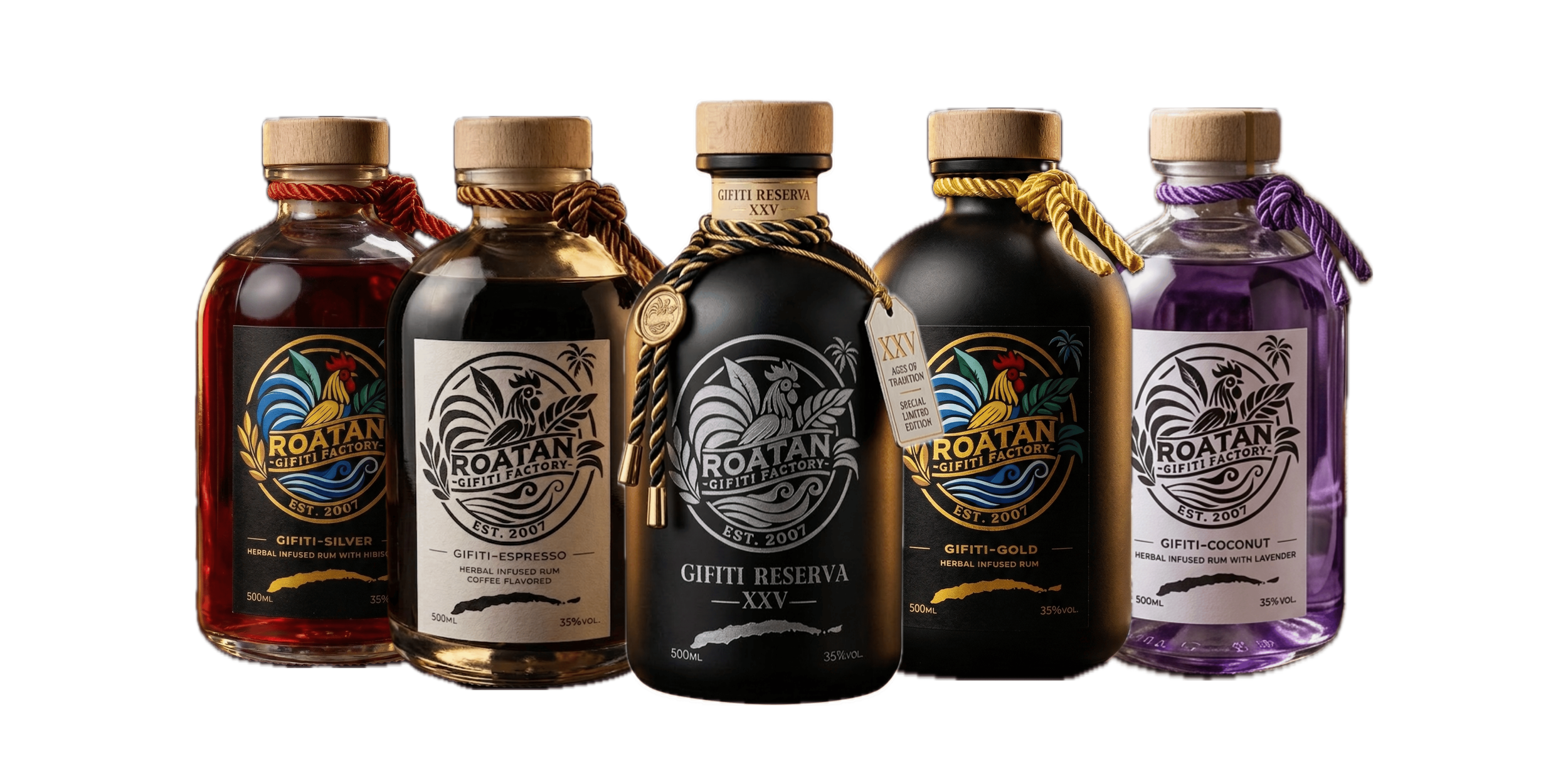 Gifiti is the Garifuna people’s centuries-old elixir — a blend of roots, herbs, and spices once crafted as a natural remedy. At Roatán Gifiti Factory, we honor that legacy through modern infusion and distillation, transforming it into a smooth, bold rum that carries its healing spirit forward.